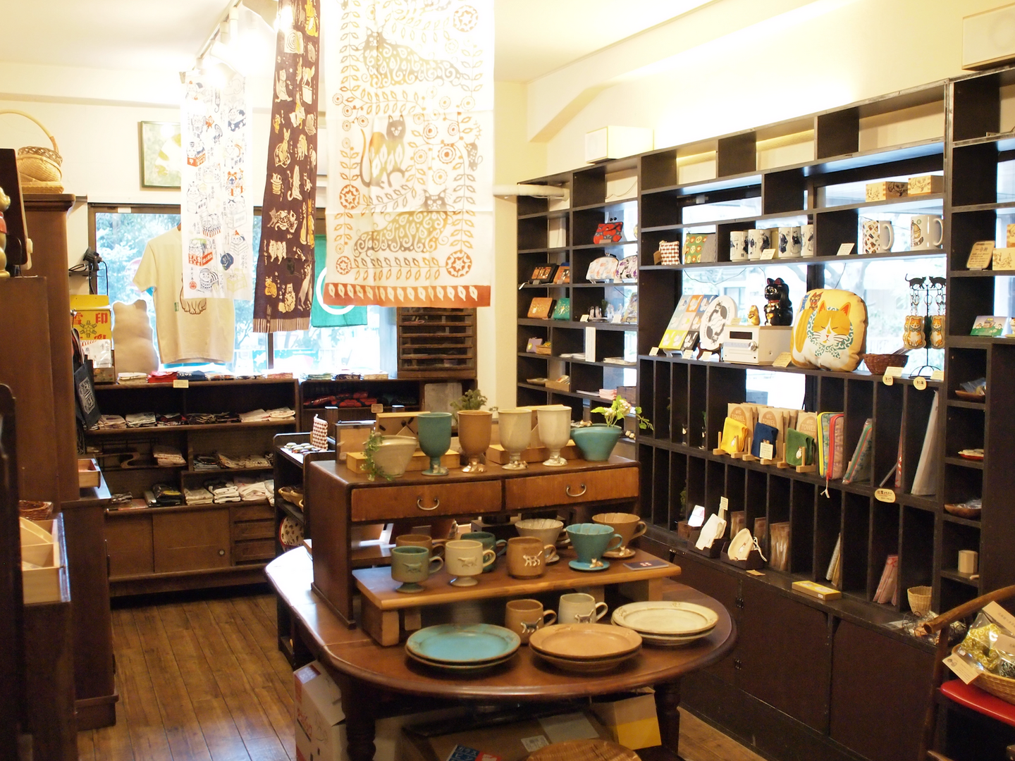 茶白のわらび店長、さび猫かりん、黒猫たんばの3匹の保護猫と暮らす店主が選りすぐった、他ではちょっとお目にかかれないような一癖あるねこもの雑貨が、昔なつかしい雰囲気の店内に並びます。